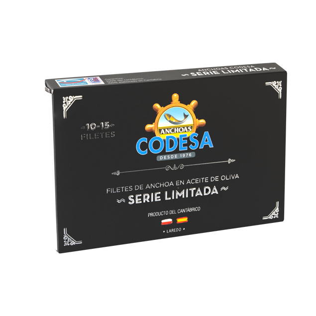 Codesa, – empresa familiar de tercera generación, ubicada en Laredo, zona considerada a nivel mundial cuna de la anchoa de calidad. Utilizan el bocarte “Engraulis Encrasicolus” capturado en la campaña de primavera en la modalidad de cerco, arte de pesca más selectivo, ecológico y tradicional. Tras la elaboración y la curación del salazón en bodega por un tiempo medio de un año, es elaborado manualmente con métodos tradicionales y artesanales asegurando un producto final excepcional.