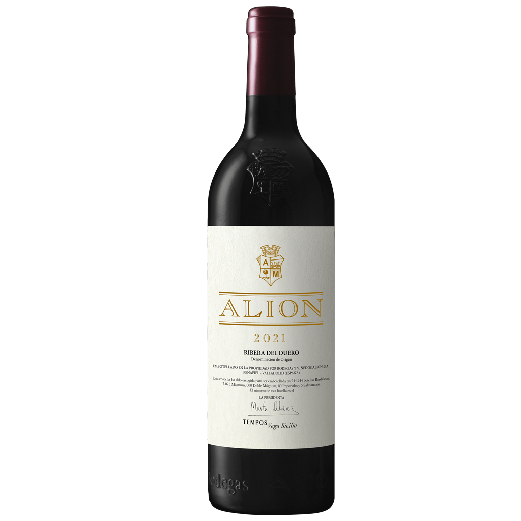 Alión es la expresión de la diversidad de la Ribera del Duero. Viñedos desde las zonas limítrofes al este de la denominación (Soria) hasta el extremo oeste (finca Vega Sicilia en Valbuena de Duero) conforman este vino, un mosaico de personalidades. Durante la crianza, en cemento, barricas y fudres, se ensamblan los distintos parajes hasta definir su armonía ribereña.