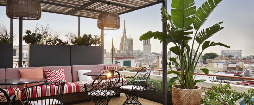 La azotea de Kimpton Vividora, un auténtico oasis con vistas 360 sobre los pintorescos tejados del Barrio Gótico, estrena nueva carta de verano.