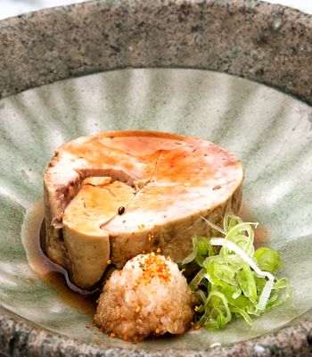 Cuenta el chef, sentados frente a frente en una mesa del restaurante que ‘desnudan’ para que podamos dejar los artilugios tecnológicos, con sendos vasos de agua -afuera cae a cántaros- y en una confortable semi penumbra –inevitable referencia a Tanizaki y su manifiesto sobre la estética japonesa en el “Elogio de la sombra”–, algunos detalles de aquella dura mili samurái; lo hace sin alzar la voz, con el mismo tono monocorde con que ha explicado la mili patria -18 meses en cantina cuartelera, 500 bocadillos diarios, horario ininterrumpido de 7 de la mañana a 12 de la noche-, un primer encuentro con la hostelería que le provocaba calambres en las piernas.