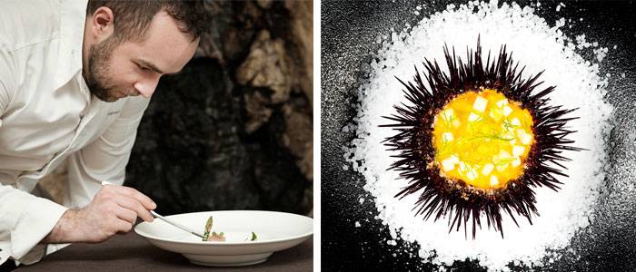 Croissant de centolla y mayonesa Kimchi 8 € | Sopa de verduras con lima y mollejas 12 € | Calamarcitos salteados con coliflor en royal y puré 14 € | Milhojas caramelizado con crema pastelera 7,50 €