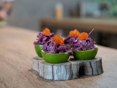 El ritmo ya va in crescendo, gracias a un despliegue de sabores que parecen adquirir forma del perfecto manual de las salsas. Como el civet de esturión que acompaña al chorizo criollo elaborado con bagre y pira­ña. O la espuma de kimuchi que se presenta junto a un esturión confitado. O el soberbio curry que envuelve a unos raviolis de pesca­do y que matiza con las notas dulces de un puré de boniato, a modo, seguramente, de anticipo del movimiento final, donde, gra­cias a los postres, descubrimos el fermen­tado de la chicha morada –bebida a base de maíz– o el ácido, la lúcuma.