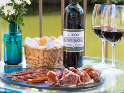 Otra finca, de 80 hectáreas, con tempranillo, syrah, merlot, malbec y cabernet. En medio de ese parque natural, reserva de la biosfera desde el año pasado, tenemos dos villas con servicio de hotel que se puede reservar bien la casa entera o, por primera vez este año, por habitaciones, tanto para temas familiares como empresariales. Es un sitio increíble donde estás como en tu propia finca. La quinta finca, cerca de Salamanca, está asociada a alimentos naturales del Duero, con quesos, ibéricos, aceite y balsámico.