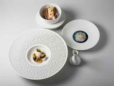 Mathieu experimenta la cocina “por impregnación. Asocio técnicas de siempre –infusión, maceración, desglasado, marinada, ahumado; y secar, clarificar– con utillaje moderno, cocina a baja presión, célula de enfriamiento, deshidratador o Gastrovac”.