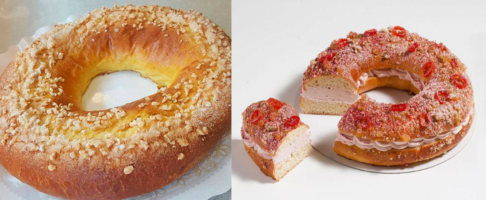 La innovación del Roscón Real 2025 se refleja en cada detalle, su masa combina el delicado aroma a azahar con la textura especiada del bizcocho de zanahoria. El relleno, inspirado en el carrot cake, mezcla crema de queso con nata ligera, mientras que el recubrimiento de chocolate blanco crunchy aporta contraste y sofisticación. La decoración, con mazapán artesanal, nueces troceadas y destellos de chocolate dorado, convierte a este roscón en una delicia.