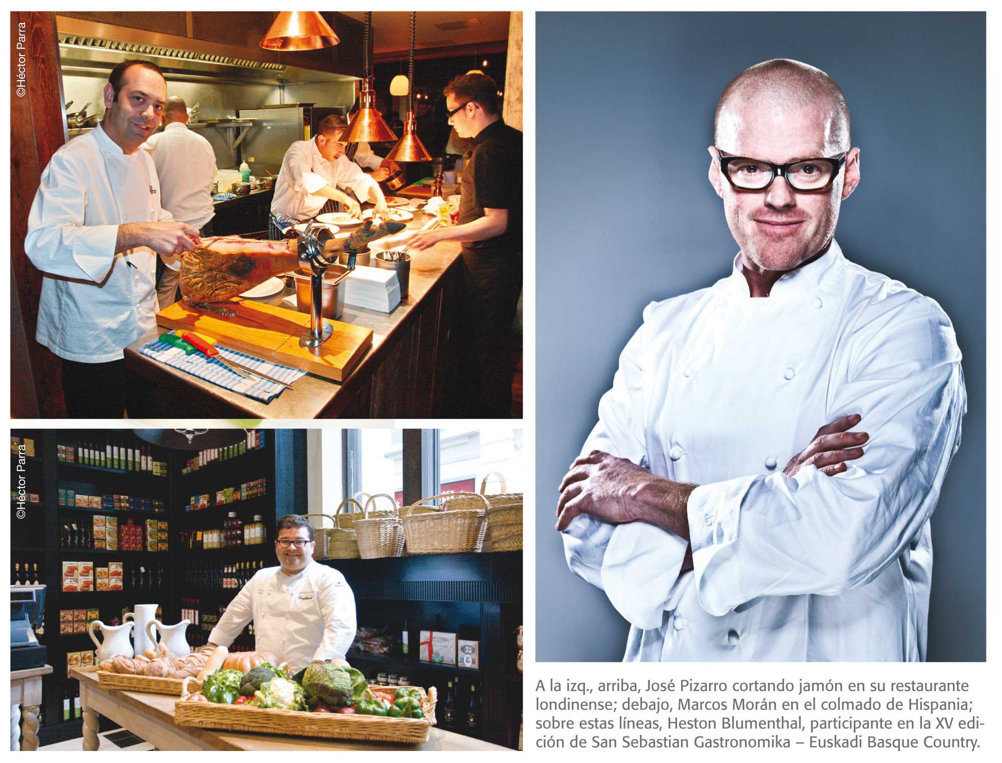 Cuando José Pizarro abrió su primer restaurante homónimo en Londres (194 Bermondsey Street), hace catorce años, poco se sabía en la capital británica de los sabores españoles. Hoy colabora en algunos medios de comunicación con sus recetas y los críticos le adoran. Cada año vende, en raciones de 60 g, cerca de 400 jamones traídos directamente de la dehesa extremeña, y también importa los quesos y los vinos; el resto de los productos los adquiere allí.