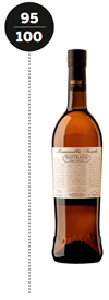 Brillante ámbar yodado. Muy complejo y punzante, elegantes aromas de frutos secos garrapiñados, hoja de tabaco, ceniza de puro, incienso, puntas yodadas, vainilla, etc. De gran sutileza, envolvente, sensaciones de almendras tostadas, finos amielados, notas de bollería recién horneada, cereales, fruta escarchada, altramuces... Envolvente y seductora vía retronasal.