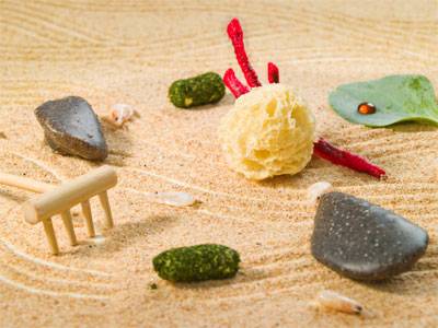 Un hallazgo exclusivo es la yema de arroz, más pequeña que un grano de sésamo y de textura crocante que evoca a los frutos secos, que ha existido durante millones de años pero nadie ha usado jamás en gastronomía. “Es sumamente rompedor, permite muchísimas elaboraciones y con un gusto completo e interesante”, afirma este chef seducido también por las algas, producto que sigue abriéndose hueco ante la futura demanda. “Estamos aprendiendo a trabajarlas, desde la elaboración de caldos hasta la reproducción de infinidad de gustos de determinados pescados, mariscos y moluscos ya que muchas tienen un sabor intrínseco similar, como la laminaria digitata que recuerda en melosidad y textura a la gelatina del bacalao. Pero todo esto hay que buscarlo”.