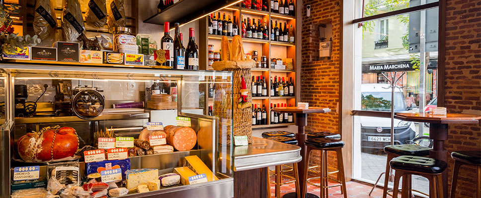 Martín Tostón (Castelló, 122), es un colmado de los de toda la vida, donde hacer las pequeñas compras del día, pero adaptado a nuestro tiempo. Así definen los hermanos Martín Hevia, Ismael y Fernando, el nuevo proyecto que acaban de emprender y que es un homenaje a su padre, Ismael Martín, figura clave de la hostelería madrileña y española recientemente fallecido. Se trata de un concepto que fusiona la experiencia de bar y restaurante con la posibilidad de adquirir productos gourmet. Como en todo colmado que se precie, el centro del local está presidido por un expositor cuidadosamente presentado que permite a los clientes adquirir, para llevar a sus casas, productos seleccionados como chacinas, quesos y embutidos. También cuenta con una estantería dedicada a productos gourmet como vinos, salsas, laterío y conservas que se pueden adquirir tanto para consumir en el local como para llevar.