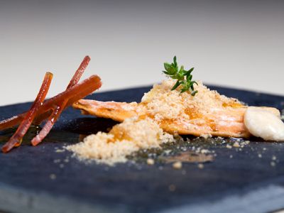 Del resto de lujurias oceánicas, destacan en sus medidos y cabales menús degustación el kimchee de gamba blanca en tartar con cítrico; el blini de aperitivo con ortiguilla, tomate rosa y mostaza; el trampantojo de playa con conchas varias, arena y jugo natural de agua de mar; la escenificación en caja de madera de unos boquerones en tempura sobre una simulación de red o la osada caballa “adobá” que sirven al cliente en la mano tras posar ésta sobre una vajilla que simula las propias manos del chef (así, dicen, es como catan los cocineros en sus cocinas las preparaciones).