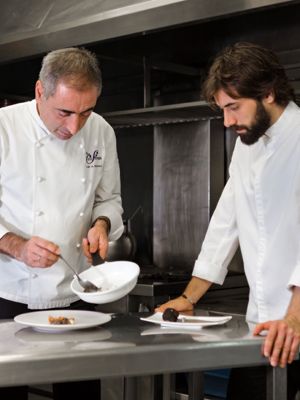 Así asegura, “viajar es una despensa de ideas que pueden brotar hasta en los lugares menos suntuosos”. A lo que tampoco renuncia es a sus raíces riojanas manteniendo una inquebrantable fidelidad a su tierra y a su huerta rica en prodigios vegetales, en la que la estacionalidad y el ciclo natural de los productos proporcionan notabilidad a su repertorio gastronómico.