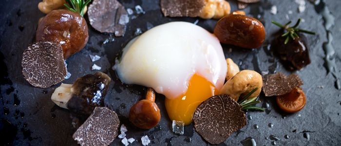 Como insuperable es su plato de otoño que reúne setas, castañas, huevos y trufas de sabores palatales dignos de palacio, y en el que están presentes todos los aromas y fragancias del bosque.