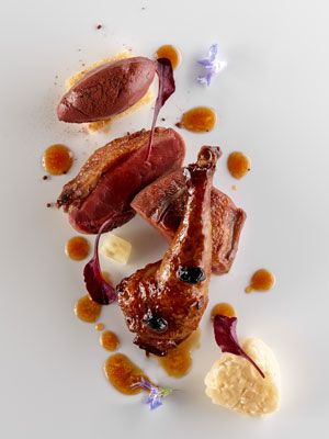 El pichón llega a la brasa, en gueridón, exhibiendo intensos cromatismos. El cabrito (el que come hinojos) es de una extravagante melosidad que sin embargo juega jovialmente con un crumble de olivas… El soufflé de gruyère con cítricos es de una ejecución virtuosa. La colisión de arenas y cremosidad con el chocolate…
