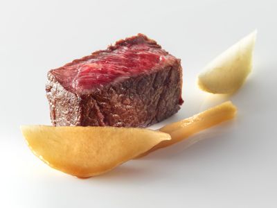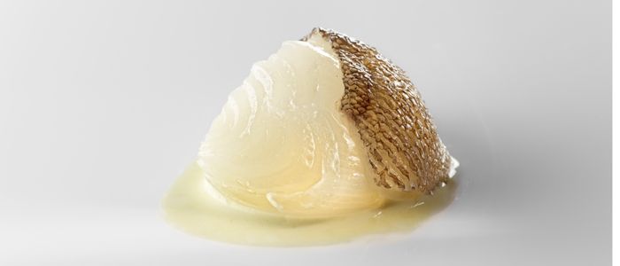 Esa devoción por los vegetales y por los caldos, unida al sentido del humor y al respeto a la tradición, se refleja perfectamente en su homenaje al popular pil-pil: la cebolla blanca con fondo de bacalao y pimiento verde. Un trampantojo en que el taco de bacalao es una cebolla en salmuera cocida al vacío con caldo de laminaria digitata (un alga gelatinosa) y cubierta con una piel de bacalao.