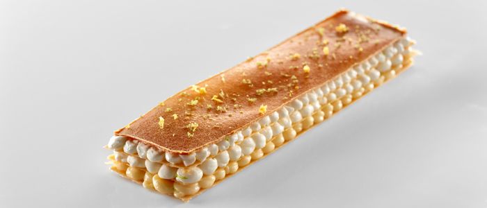 Milhojas de patata, manzana asada y lima |