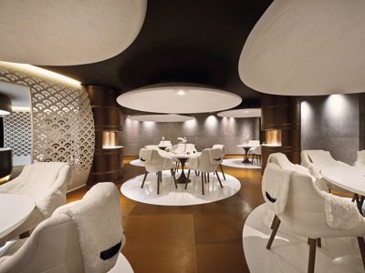 Un solo 3***: el 1947, en Courchevel, cocina de Yannick Alleno. Pero hay 12 restaurantes con dos. Y 57 con una. Alleno tenía ya 3* en su Ledoyen parisino. Hijo de los propietarios de un café de las afueras de París, fue el primero que reivindicó productos parisienses. Y les dedicó dos bistrots, llamados Terroir parisien (terruño parisino), a los que hoy ha renunciado. El 1947 es de Bernard Arnault, propietario de LVMH, la primera multinacional del lujo. Alleno lo abrió el 2008.