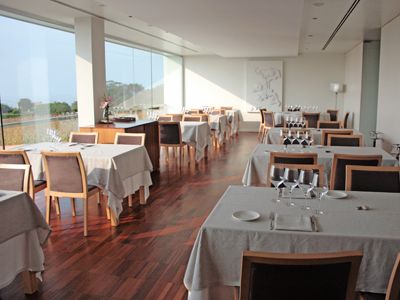 Sus raíces motivaron que iniciara la búsqueda de una casa de arquitectura de tipismo marino para su proyecto restaurador. Anduvo toda la orilla y no la halló. Al final hubo de conformarse con una edificación impersonal y anodina, que Olleros define como de “feísmo gallego”, donde existía un supermercado que transformó en un local moderno de líneas geométricas puras, con amplios ventanales que ofrecen un decorado natural de increíbles vistas a las huertas colindantes y a la ría de Arosa.