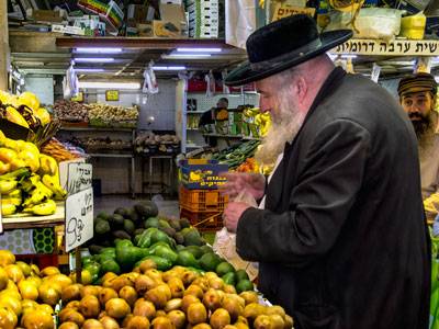 Todavía es emocionante detectar en la mesa los productos básicos de la dieta de los más antiguos habitantes de Oriente Medio; trigo, cebada, aceitunas, higos, dátiles, granadas y uvas. Se unieron más tarde garbanzos, tomates y verduras suculentas. Recientemente, la nueva agricultura ha llevado a los mercados los cítricos, aguacates y productos subtropicales. La religión incide en la alimentación, generalizada la comida kosher, que emplea los ingredientes que se adaptan a las leyes dietéticas del judaísmo de hace 3.000 años. Esas normas, básicamente, prohíben comer cerdo y moluscos, y mezclar productos cárnicos con derivados lácteos.