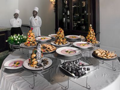 Dónde comer Victoria Falls, Zimbabue El restaurante de mayor nivel en el Victoria Falls Hotel, se dedica a la cocina internacional con presencia de algunos productos locales y magníficas carnes, con extensa bodega y servicio impecable. Precios moderados en relación a la calidad. Victoria Falls, Zimbabue Restaurante a la carta del hotel Ilala Lodge, de esmerada cocina en la que aparecen carnes locales de avestruz, cudú y cocodrilo, cuyo trabajo ha sido premiado en los últimos años entre los mejores del país. Victoria Falls, Zimbabue Gastronomía muy cuidada en el elegante restaurante del Victoria Falls Safari Lodge, donde se prepara cocina internacional con productos frescos y esmerada presentación que incluye elementos de producción local. Royal Livingstone Dinning Room Cataratas Victoria, Zambia El restaurante principal del hotel Royal Livingstone presenta una carta muy cuidada, de inspiración en la cocina clásica europea a la que añade algunos toques zambianos y la influencia de la cocina india que aporta su chef, logrando una propuesta intensa y expresiva. Cerca del Zambezi Sun Cataratas Victoria, Zambia El restaurante practica cocina de inspiración africana de gran calidad y solidez, que respalda un local dirigido a un público internacional heterogéneo. Música y danzas acompañan una experiencia no sólo gastronómica. The Royal Livingstone Express Cataratas Victoria, Zambia Experiencia gastronómica a bordo de un tren histórico de vapor lujosamente restaurado que se asoma a las cataratas desde el puente internacional, donde ofrece un aperitivo, antes de desplegar un refinado menú de cinco platos con buenos vinos que se sirve en el vagón restaurante, en una atmósfera llena de glamour. |