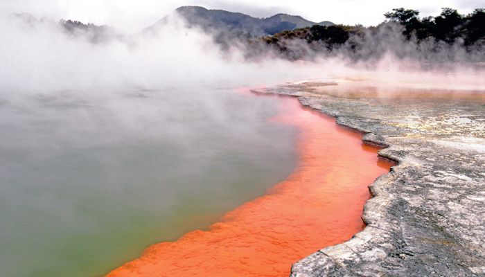Rotorua es la ciudad de los volcanes y los lagos, donde cada casa tiene agua caliente natural procedente del subsuelo ardiente que ha generado las zonas termales de Kuirau Park, con sus balsas de barro hirviente, y de Waiotapu, con lagos anaranjados como Champagne Pool, y un festival de colores naturales en Artist’s Palette.