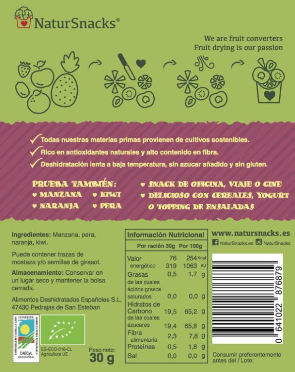 Alimentos Deshidratados Españoles S.L. va a presentar bajo su gama NaturSnacks en el Salon de Gourmet la primera vez su nueva gama de fruta seca (fruta deshidratada) natural (BIO/ECO)