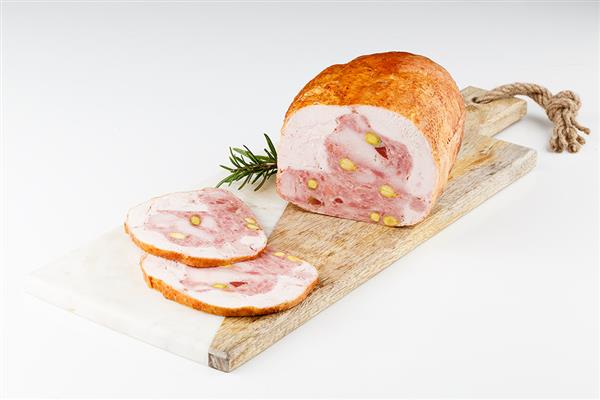La combinación de la carne ibérica aporta jugosidad y sabor y los pistachos contrate al producto.