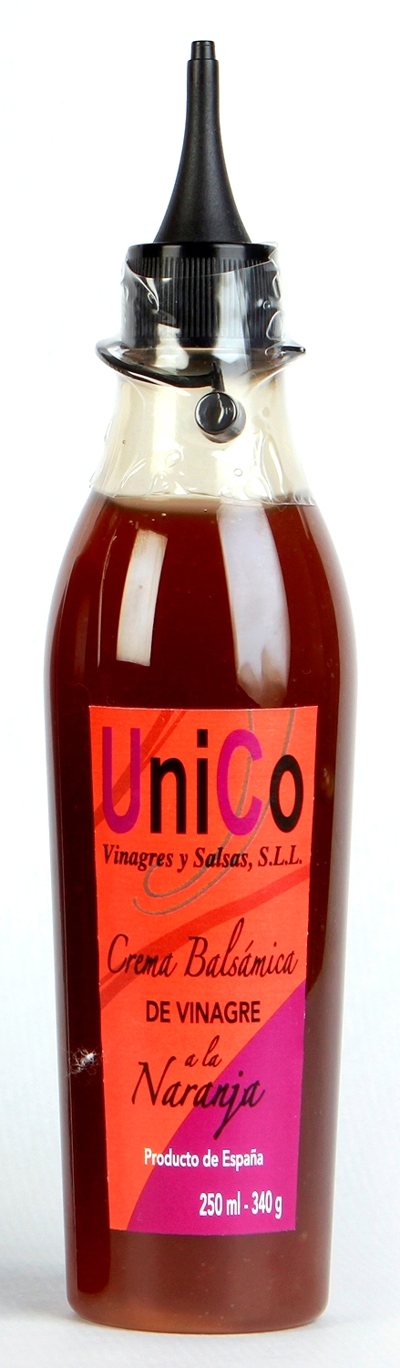 Esta crema se produce a partir de nuestro vinagre de vino a la Naranja, elaborado con vinos finos y zumo natural de naranja, que le aporta un toque especial, en cuanto a su sabor y aroma.