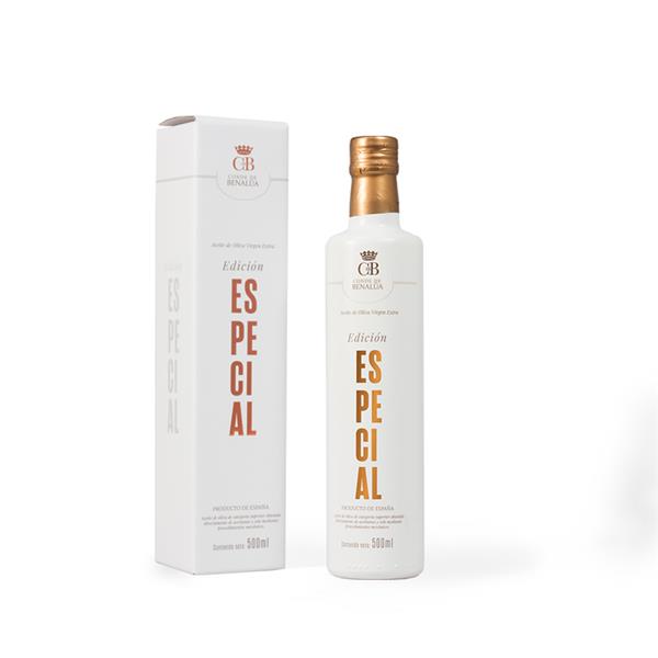 ACEITE DE OLIVA VIRGEN EXTRA +CONDE BENALUA ESPECIAL, SE TRATA DE UN COUPAGE PREMIUM DE TRES VARIEDADES PICUAL, ARBEQUINA Y HOJIBLANCA.