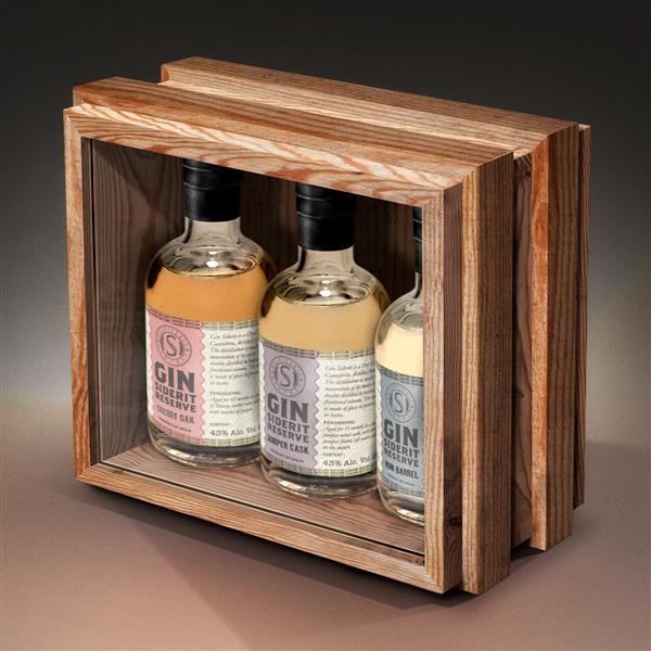 Este estuche de madera de 3 botellas de 200ml de Gin Reserve Siderit de Edición limitada se compone de: