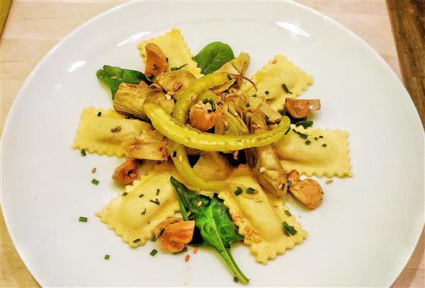 Pasta rellena apta para veganos.