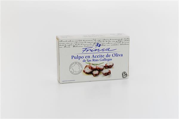 El pulpo Frinsa procede exclusivamente de las Rías Gallegas. Se elabora a partir de los tentáculos del molusco, cortados a mano y enlatados añadiendo únicamente aceite de oliva, para disfrutar de su auténtico y característico sabor.