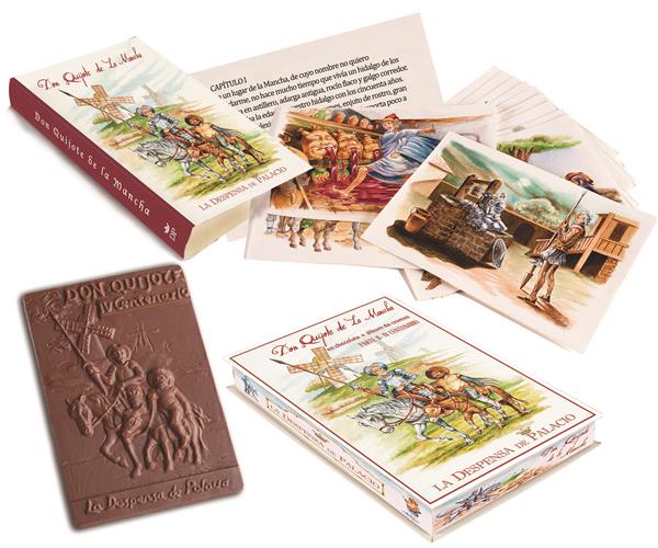 Un estuche dedicado a la obra cumbre de Cervantes. Contiene un autorrelieve en chocolate con la imagen de la tapa y un álbum con cuarenta ilustraciones de las principales escenas de la obra.