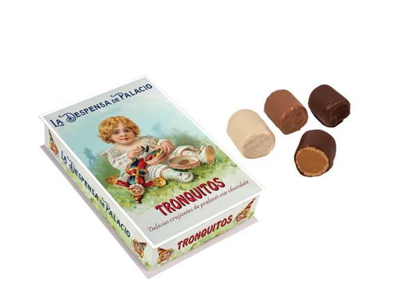 Ligeros y crujientes barquillos rellenos de pralinés de avellana, pistacho, nuez pecana y bañados en chocolate.