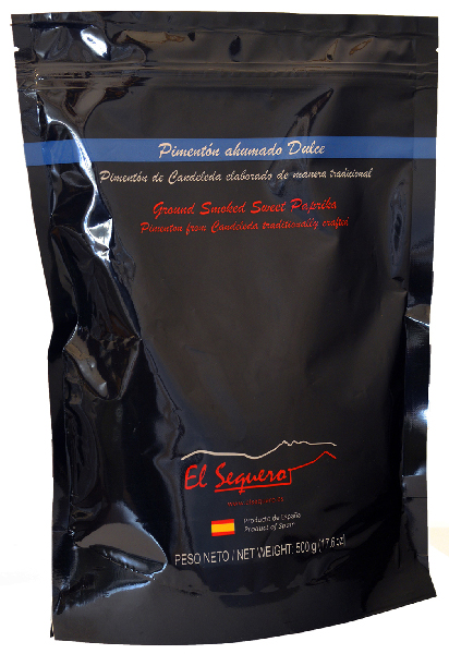 Bolsa de 500 g de Pimentón ahumado de Candeleda dulce El Sequero. Un pimentón ahumado elaborado mediante un proceso totalmente artesanal desarrollado por la familia Gómez Núñez durante más de dos siglos.