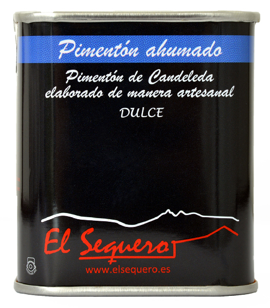 Lata de 70 g de Pimentón ahumado de Candeleda dulce El Sequero. Un pimentón ahumado elaborado mediante un proceso totalmente artesanal desarrollado por la familia Gómez Núñez durante más de dos siglos.