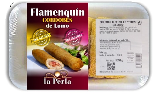 - La Perla SIN GLUTEN y SIN LACTOSA. Una línea básica para personas con intolerancias al gluten y/o a la lactosa. También con mini pinchitos de pollo y de cerdo y pinchitos de 5 trocitos ensartados sin gluten y sin lactosa.