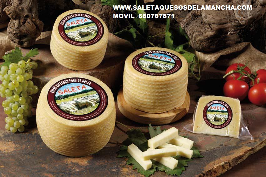 Industrial Quesera SALETA. Se fundó hace más de 100 años, durante los cuales se ha transmitido de padres a hijos la tradición en la elaboración de Queso Manchego, Puro de oveja. Todos nuestros quesos, se obtienen a partir de una selección de la materia prima, aplicando en el proceso de fabricación y comercialización un control estricto de higiene y sanidad, ofreciendo la mayor calidad y artesanía posible, lo cual nos caracteriza y nos diferencia de las grandes superficies. Ubicación e instalaciones: Nuestra fábrica está situada en Bolaños de Calatrava a 30 Km. de Ciudad Real, en la orden Calatrava y la ruta del quijote una zona privilegiada en cuanto a la situación de las explotaciones ganaderas, debido a su clima duro y extremado, que favorece el crecimiento de una vegetación muy rustica, alimento de una curiosa y ancestral raza de ovejas, estas características ofrecen como resultado un queso único en el mundo ya que ha sido imposible imitar tantos y tan antiguos factores, al mismo tiempo mas allá de las fronteras de la mancha. Eso le da a la leche una mayor calidad, que naturalmente es transmitida al producto final: EL QUESO. Disponemos de unas modernas instalaciones, con una gran capacidad de producción, lo cual no impide respetar los métodos tradicionales, necesarios para conseguir la calidad y las cualidades del autentico queso artesano puro de oveja, gracias a ello y a los exhaustivos controles sanitarios, hacen que nuestro queso sea demandado por su calidad y exquisitez inigualable.