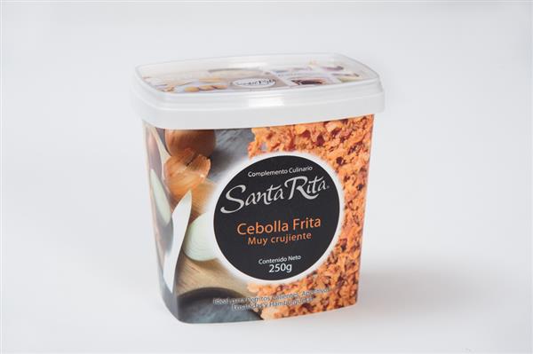 Cebolla frita, muy crujiente, formatos 120 g. 250 g. y food service.