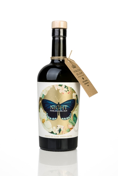 ECO-NIGHT es representado por la MARIPOSA que poliniza las flores que abren de noche. Indicador de la calidad medio ambiental de nuestros cultivos. El cambio climático y el uso de pesticida e insecticida hacen que estén en peligro de extinción. Aceite frutado, dulce y armónico. Complejo en matices con tonos verdes, frutados y aromas que recuerdan las plantas que conviven en nuestro olivar.
