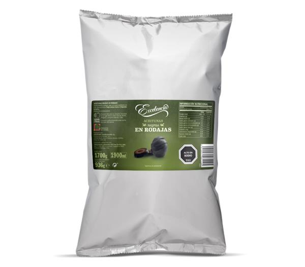 Aceitunas negras en rodajas en formato bolsa de 936g