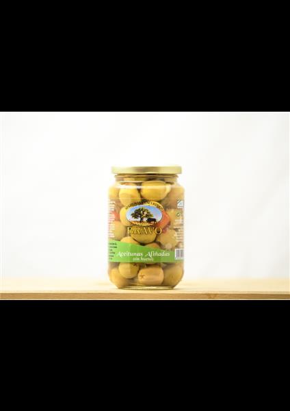 De la variedad Aloreña, la coloración es habitualmente verde, verde-amarillento o de una tonalidad marrón clara, dependiendo del grado de fermentación. Presenta una textura crujiente y un sabor afrutado especialmente diferenciado de las aceitunas aliñadas preparadas de cualquier otra variedad. Se caracteriza por la presencia, junto con las aceitunas, de los productos naturales del aliño (ajo, tomillo, hinojo y pimiento).Las aceitunas Aloreñas de Málaga posee unas características propias que las diferencia de otras variedades de mesa y que ha llevado a que se las conozca como la “Pata Negra de las aceitunas aliñadas”. Entre esas cualidades destacar: su textura gruesa que facilita la penetración de los aliños utilizados en su condimentación; su proporción hueso-pulpa, su calibre por encima del de otras variedades y por último destacar que no necesitan fermentadores para mantener el producto, sólo se usa agua y sal para su conservación, por lo que es la aceituna más sana que puedes consumir hoy día.