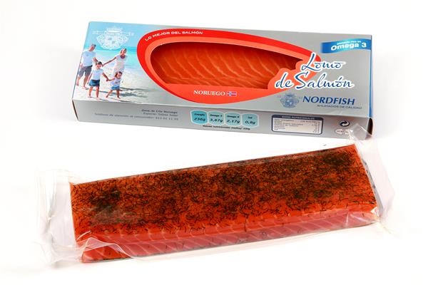 Los lomos son la parte más alta del salmón. Utilizamos solo las piezas más grandes obteniendo así el sabor más intenso y la textura más delicada. Nuestro salmón proveniente del Mar del Norte (Noruega). El salmón más fresco llega a nuestras instalaciones cada semana y tras una selección de las mejores piezas se preparan bajo las técnicas tradicionales del ahumado obteniendo un producto de máxima calidad para los paladares más exigentes. Encontramos los siguientes envasados:. Salmón Noruego Ahumado Lomo pieza 1000 gr, 400 gr, 150 gr y 100 gr. Salmón Noruego Marinado Lomo pieza 1000 gr, 400 gr, 150 gr.