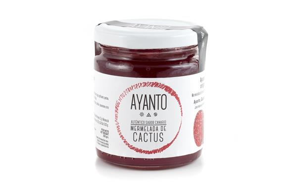 Del cactus, pitera, tunera o en la península chumbera, recogemos su fruto el tuno indio rojo o higo pico para los locales, quizás una de las frutas más complicadas y costosas de recolectar. Los higos se barren y limpian meticulosamente para evitar la caída de picos en la pulpa. El tuno indio es un fruto muy rojo que debido a su abundancia en las laderas verticales y zonas más secas donde el abundante sol le hace madurar y coger un gran dulzor. Con un contenido muy alto de fruto mínimo de 65% de fruta, a la receta se le añade un poco de fresa ácida para contrarrestar el dulce natural de higo del cactus, por 35% de azúcar, que hace que conserve muchas de las propiedades naturales y curativas que tiene el fruto, no llevan ni colorantes, ni aditivos, ni aromas artificiales, el sabor de la fruta madurada en el árbol y recogida a primera hora de la mañana para ser cocinada en unas pocas horas. Ideal para desayunos y especialmente indicada para tomar con foie, también sirve para acompañar quesos, como base de salsas rojas para carnes y en elaboraciones de pastelería y repostería.