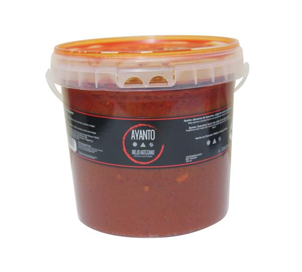 AYANTO es mojo rojo canario natural, sin conservantes ni colorantes y 100% libre de gluten. Ingredientes: Pimienta Palmera, aceite, vinagre de vino, ajos, sal marina natural y un sutil toque de cominos. Nuestro Mojo artesano esta disponible tanto dulce como picante.