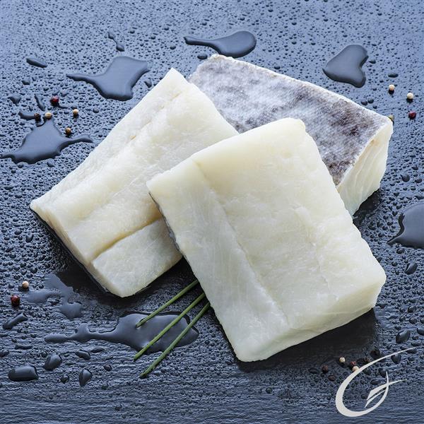 Excepcionales tajadas seleccionadas, muy bien recortadas y de grosor uniforme, de auténtico bacalao Gadus morhua pescado con anzuelo en las Islas Faroe e Islandia, salado en origen. Desalado mediante un proceso exclusivo sin blanqueantes ni sulfitos.
