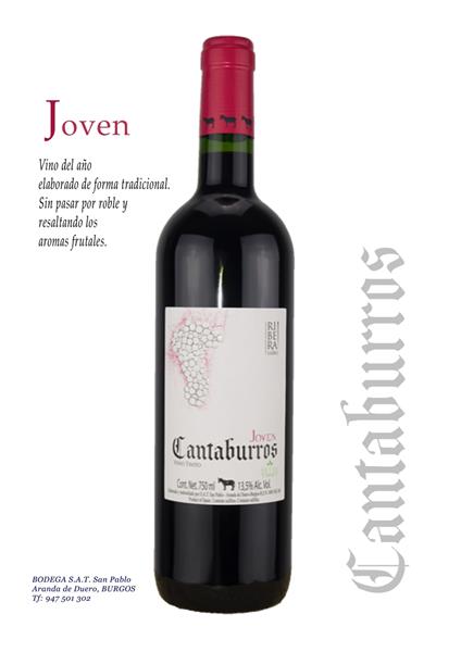 ELABORA VINOS TINTOS (JOVEN, ROBLE, CRIANZA Y RESERVA) CON UVA PROCEDENTE DE VIÑEDOS PROPIOS, SITUADOS EN ARANDA DE DUERO EN EL PAGO DE CANTABURROS, TODOS ELLOS CON CERTIFICADO ECOLOGICO.