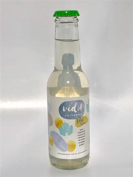 Agua sin gas 200 ml. elaborada a base de elementos de la vid de variedad godello. Concentración media