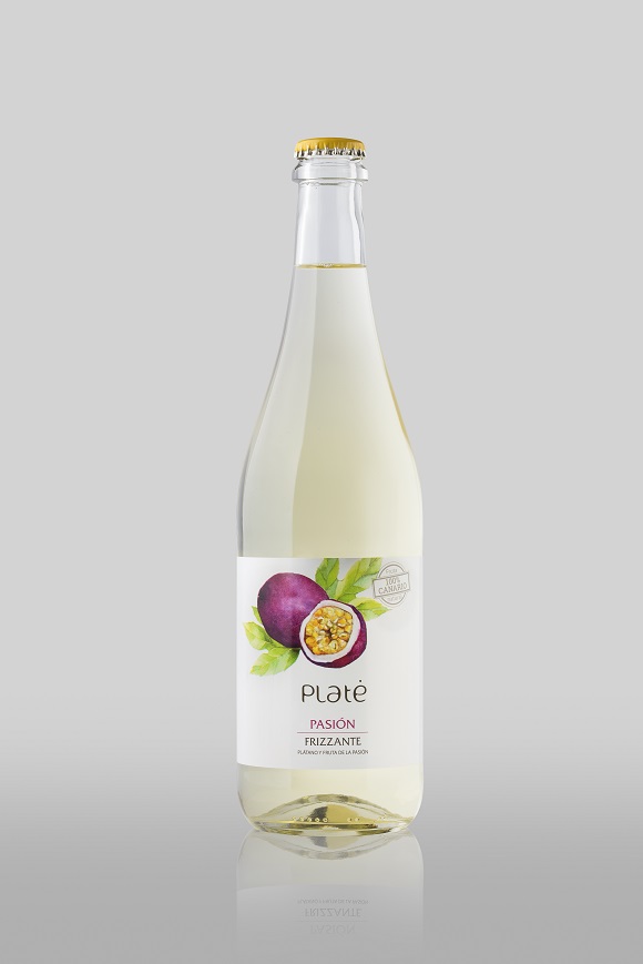 Platé Pasión es una bebida elaborada mediante la fermentación de Plátanos de Canarias (IGP) y fruta de la pasión(también conocida como maracuyá o parchita), ambas frutas producidas en Tenerife, sin adición de sabores ni colores artificiales, elaborado de manera artesanal, logrando con esta unión una combinación de aromas y sabores tropicales exóticos y deliciosos. Es una bebida fresca, afrutada, aromática, muy ligera y con cierto dulzor. Color Amarillo brillante. Aromas primarios de gran intensidad a fruta de la pasión, y en retrogusto a plátanos frescos. En boca presenta un excelente equilibrio de sabores dulces con un toque de acidez que le aporta frescura, con un toque de carbónico que lo hace muy refrescante, fácil, divertido de tomar y perfecto para disfrutar en cualquier momento del día. Es ideal como aperitivo y puede ser maridado con pescado, ensaladas, sushi, postres, frutas y chocolate. Servir muy frío y disfrutar.
