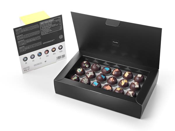 Con diseño de mosaicos hidráulicos y sabores que combinan con el mejor chocolate: rosa, café, sal, naranja, canela y avellana.