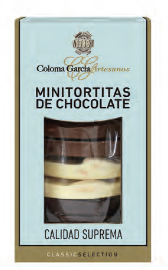 Tortitas de turrón de 3 chocolates en un formato de 6x30 gr. Tortas individuales que harán las delicias de los comensales.